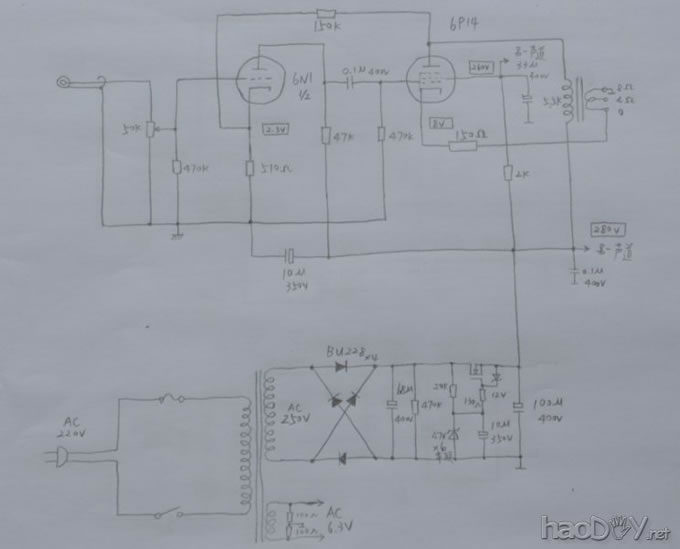 牛罩和底座装到一起 ![]() 试了一下,空隙高度比100UF400V的电容直径稍大一点点,惊险。 ![]() ![]() 电路板+AB胶 ![]() 焊稳压管,47V六只 ![]() ![]() ![]() ![]() ![]() ![]() ![]() ![]() 因为有十几斤重,小胆机还是很稳当的,不用点力都推不倒 一次性出声了,但有个问题,想调试一下线路什么的那是相当的困难,因为要把线路部分露出来,要拆掉好多线…… 没有干扰,没有交流声。6只47V稳压管串联,场管稳压输出部分280V 试了一下,拨掉前级放大的6N1,直接将6P14栅极的耦合电容接到音频输入端,音质a很棒 改到目前的电路,省略了阴极电容,既能提高本级的负反馈量,又能节约空间。6N1阴极推荐的是680欧,但手头只有510欧的,在论坛看到这样的反馈,就借用来了。如果用6N4或12AX7,请参考J版的12AX7前级的那个电路,并注意高压部分用电阻调到需要的电压。目前大中小音量试听,感觉还不错。 没有仪器、没有专业知识(学的干的是会计类),东拼西凑的东东,会响就满足了 ![]() 图中是实测的电压 (责任编辑:admin) |