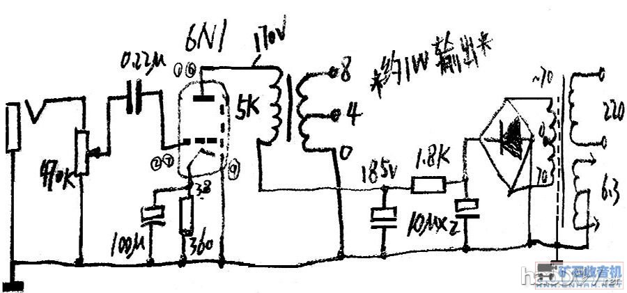 ⑤设计、取材思路:就地取材,越简单越好,无负反馈,输出牛初级未并联1000-4700PF电容