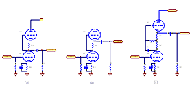 图2的三种电路虽说都是SRPP电路,但却不尽相同。