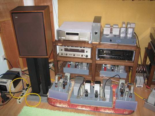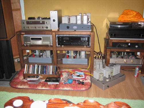 蜜月里新做的全西电零件437分体电源前级终于开声,效果的确非同凡响! 声音维持西电一贯的鲜艳活生中频,电源由于重料制作,声音更显从容淡定,韵味超越自己以往制作的任何前级,事实再次证明:零件本身的声底(品质)极大地左右声音的素质。 电源:全西电油浸电容,为了靓声,不作妥协,用两个独立WE小灯丝牛(一个兜底)分别点整流胆和437,大牛只供高压,设开关转换,可插80、274、或412整流,开声时先上WE412,全套WE土炮艳丽欲滴的音色令自己甚为满意。 主放大部分,盘面由于属实验阶段甚为难看,但丝毫不影响声音的表现,栅极用上两个600H牛取代AB栅漏电阻,此举带来更加丰富的泛音和余韵,阴极电阻则用上最高级别的铜箍边40年代WE骨牌线绕电阻,声音之美妙乃属意料之中。 重新用镀金架和AB电阻(自己只喜欢碳阻)制作了分流电位器,毕竟是第一关,不敢有丝毫怠慢。 推四年前做的三分体300B,此300B由于自己已改为WE牛推动,虽没有原装而只有朋友代工的复刻171A,但由于用相同的铁心,味道仍然相当纯正,推自己的钴磁十寸天朗放交响乐完全胜任有余。特别是单端机纯正、透明、娇艳、空间立体感好、余韵长的特点令人着迷。 300B电源,整流灯丝牛独立(黑色),金脚三角扼流,插座为美国京王插。 300B电源下体,当然还是自己爱用的WE线。 我的系统 前级主放大部分的下体,拍摄时的电位器未换,为DALY电阻。 再看:西电蜡布线,阴极电解也是打KS的WE ,这个电解声音极为开扬漂亮。 线路接近这个,零件参数有少许更改,灯丝也改为交流,取其声音更为生动活泼些 原先的300B,推动牛为UTC,声音保持牛交连味道、驱动力好、全面、泛音多等优点图中的铁壳为300B阴极电容,英国油浸50U150V,声音远胜电解。 最近推动牛改为西电5K:20K以及输入阴极电解改为KS后声音当然突飞猛进,可惜放不下WE油浸,也足够了,总不能贪得无厌。 电位器换成AB碳阻后声音的确进步不少,表现为声音变得润泽,甜美,照样很通透,原先的DALI 声音有点呱呱叫,而且音像有点前冲的感觉,声音过于瘦兼锐利,一句话,AB自然许多.另外,也许自己的耳朵不够灵光,听不到输入级的电阻会发出噪音,呵呵! 近年潜心玩古董零件(特别WE)以来,更加深刻地悟出靓声不同于电脑,与科技含量、技术指标(包括线路)的先进与否并无必然联系,就音乐表现力来说,古董零件过之而无不及。如单纯从仪器测试的角度,今天很多古董零件根本不合格,但落实到听觉中完全不是那么回事。——欢迎批评指正。 最后关于西电布线,西电线有好几种,其实我自己也未曾认真比较过,我是凭感觉,个人较喜欢蜡布带漆包的单支那种,觉得线身柔软,期数较早,也易焊接,心理上觉得应该好声些(呵呵),有时高压也尝试用多股的WE线,灯丝如电流大当然要偏大些的,最不喜欢后期带胶皮的,觉得线身很硬,又难上锡,用得较少,其实DIY的乐趣正在于此,不必拘泥格式,如你图片机上的WE线,才用短短的一段,线材就是线材,声音应该不会脱胎换骨,量变才会质变嘛,另外,在下见识浅薄,不知哪种是西电银线,也许是JS炒作而已,瞎说的。 我其实靠多听模拟器材才明白WE的过人之处,数码器材欠缺的正是声音中的丰富色彩,很多时候听CD总觉得平淡无味,如同一部彩色电视机,虽然亮度、对比度清晰度做得很好,但色彩不够鲜艳的话,总会让人感到遗憾,也许自己的先锋09还是太差,比起自己的THORENS520,区区一个普通MC头,但重播的出来声音却色彩丰富,自然舒服得多。另外回WE618兄,西电零件网上JS很多的,但得花时间去找 (责任编辑:admin) |