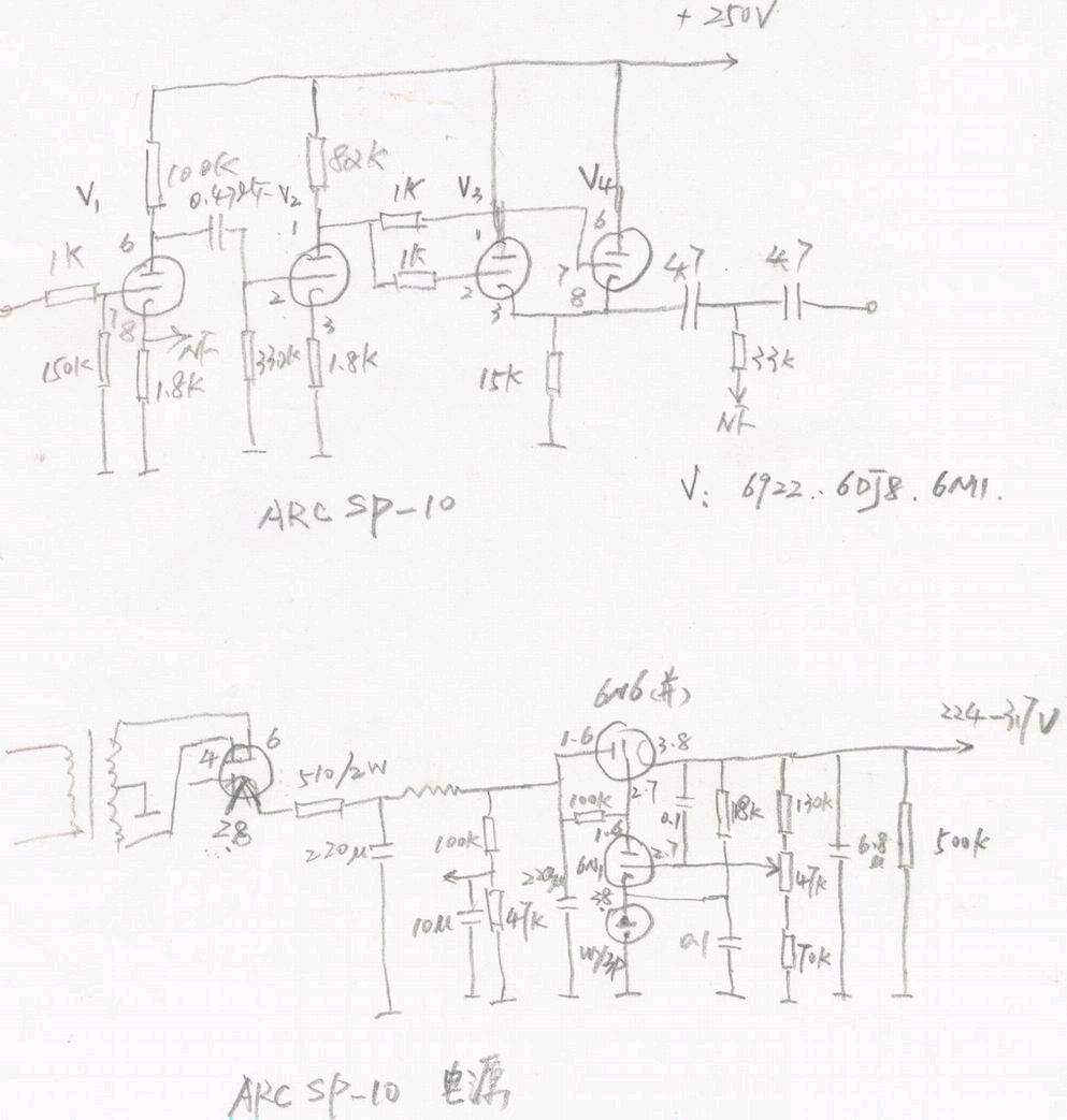 线路图 电源 实验结果:按原电路元件参数做出来声音有阻塞现象~~把第二级阴极电阻改为3.2K阻塞现象消失,对比6SN7版GG前级~~声音层次好,音场开阔,韵味稍微淡了点~~此前级增益大~~9点位置相当于GG前级的12点位置~~