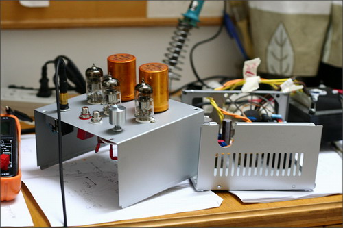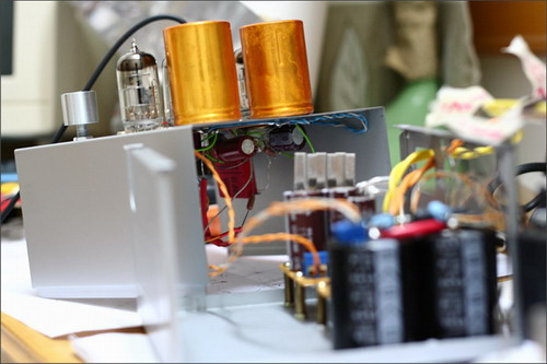 潜水多时,突然对灯泡有了兴趣,参考了多位前辈的作品,异想天开密谋搭棚一个简单点的作品,去对比购买的垃圾套件。选择多时,确定用著名的MJ电路开刀,原因无他,就冲着简单二字。至今晚完成并调整成功,对效果比较满意,声场宽阔,中高频有些特色,信噪比很高(晚上10点根本听不见交流声)。也许是耳机比较低档,仅为32ohm的DT231,无法体会到MJ电路的更多精华。但是,比较网上有些所谓“声声入扣”的300多块的套件,那好得就不是一两倍了。 机壳用的是一个废电脑开关电源的外壳,电阻数值基本上参考原电路,由于用了手头上的电源变压器,电源部分有些改变,并使用了LT317给灯丝直流稳压。管子用二手的6N11J,电阻用的是DALE,除了高压滤波外其他电容全是拆机货,输出有两颗ROE(最贵的零件了),全部下来也不到100块…… TMD卖套件的JS们 主要参考的是“发烧少帅”前辈的《刚完成的Morgan Jones迷你耳放》 ![]() 电路原作来自 《The Morgan Jones Mini Tube Headphone Amplifier》 ![]() 对二位和其他前辈的参考文章表示感谢 |