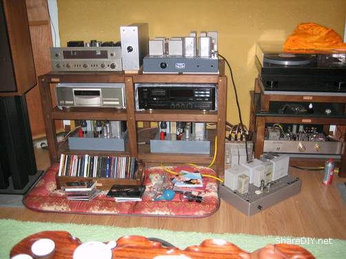 推四年前做的三分体300B,此300B由于自己已改为WE牛推动,虽没有原装 而只有朋友代工的复刻171A,但由于用相同的铁心,味道仍然相当纯正,推自己的钴磁十寸天朗放交响乐完全胜任有余。特别是单端机纯正、透明、娇艳、空间立体感好、余韵长的特点令人着迷。蜜月里新做的全西电零件437分体电源前级
