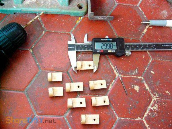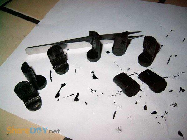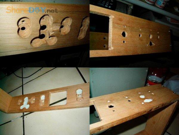 图说:使用塑钢土补多挖的孔与用来辅助鑽头方向的孔。