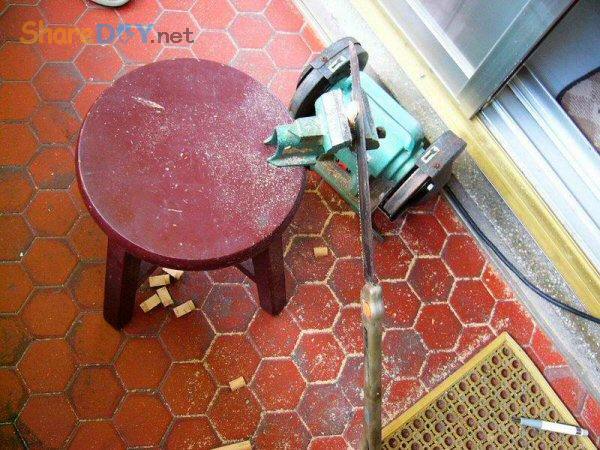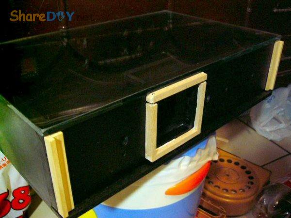 VU显示窗"粘合与补土补完的样子。问师父粘木板有什麽需要注意的地方?师傅的回答是:没什麽撇步,施加压力会比较密合,不施加的话顶多是有个缝,不过最重要的是:白胶不可以省!