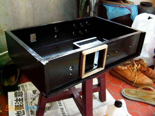 图说:白白的机箱其实看起来也不错喔,在来就是上漆了,先上黑色的底漆。