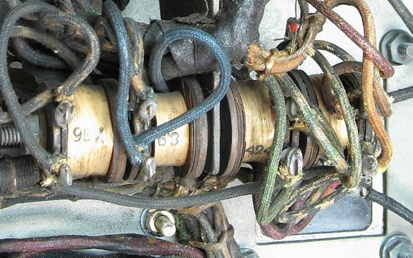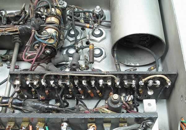 86A全机是没有偏压调校,祇有在Meter接线位外接电流仪錶监察每支胆的电流工作情况。在有限电流量度范围的仪錶要测量每支胆的屏极电流,祇有在胆的屏极电阻处串联多一颗的电阻作参考电流的数值,因此,可在300B的 “输出牛”初级线圈处串联了0.424 ohm。在VT1、VT2、VT3这三支262A均有串联了19.25 ohm的电阻。而这些电阻是要准确和高信赖的要求,西电厂就祇有自行绕製的电阻,日本仔称之为“丸球电阻” 图(8);就是用相当昂贵的合金线电阻,这种线电阻是採用多种比铜更高内阻值的金属溷合而成,按不同粗度线径和线的长度决定所需绕製的电阻值,数值是相当之准确;所以可造出19.25 ohm或0.424 ohm那样的精确。 说来60多年前造电阻科技可叫今日我们的发烧友讚叹!而这些电阻因为是金属线,不易变值、温度系数极佳、而且可自行决定阻值、还可以用“銲锡线”銲接 (钨丝不能銲锡)。