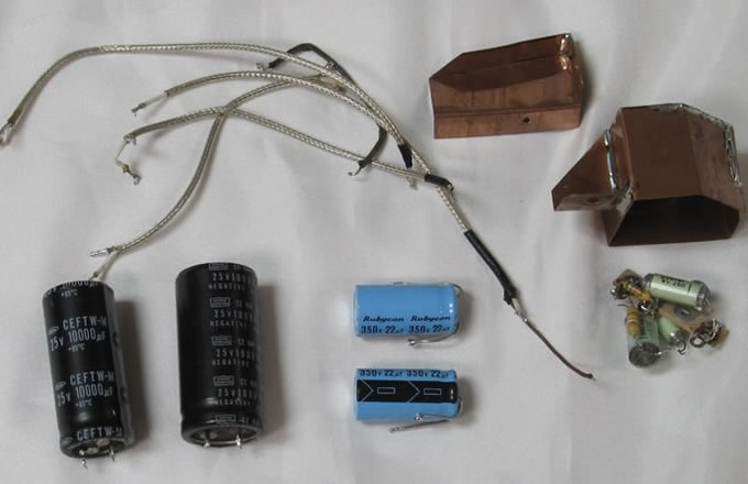 我們還留意得到這No.105A前級所有的電源濾波和分級π型降壓電容,每單聲道用了六個8uf 450v的電容;如因單以電源處理的電容來計算,總電值是48uf。在初學者或新派大電容主義者往往有所懷疑,這麼低容量的電容足夠提供全機的供電能量嗎?《西電》就告訴你,實質的深層意義理論是可行的,而且比起無限大電容理論的學說更成功;在供電與儲電的回電速度更快。須知的是愈低容量的電容在充/放電的時間速度是愈快;可理解是電源牛T3/360c和整流管274A有足夠接近所需用電量十倍的能量,就無須倚賴大電容儲電。