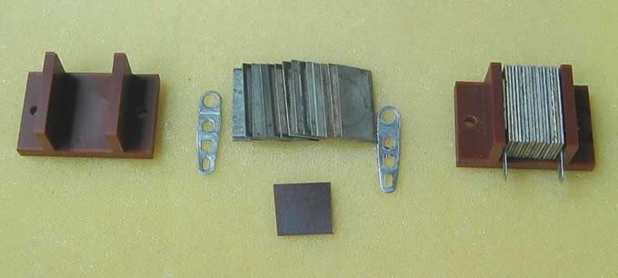 在完成M-1主機放大的還原工程後,驗查分體電源,不幸的!整流硒也是被新式的二極整流子取代了圖(9),但因新式的整流子在聲音的表視是不能取代 “硒”的,可惜是!找尋“硒”不是用錢就可以解決的問題。為了這套漂亮的M-1,筆者只好拿出收藏多年的古董橋式硒整流器,是NOS.未用的,上面印著300v 100ma,因橋式整流是四組的整流元件,而在M-1的全波整流只須兩組便夠,於是就不惜一切的將這橋式硒整流器解剖,內中有36片 “硒片” 圖(10),因已知耐壓值是四組300v的組件,每組是9片,即是每片耐壓值是33.3v,若以安全和耐用的要求來說,這分體電源整流的耐壓值最好要有400v左右,即用12片x 33.3v = 400v,就是最理想,又因安裝“硒片”是要求較高的技術,包括固定位置和高壓測試,暫且容許日後個別講解。