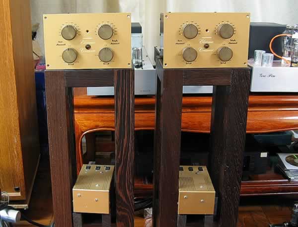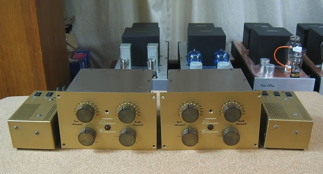 此時頓萌一聽為快之念,就是用這電子分音分兩路推動「志平」仿西電91的300B後級和2A3後級 圖( 12 ),同時推動兩對「志平」3吋小喇叭圖( 13 ),桃木板負責低音段,黑檀版就擔起高段的責任,M-3的分頻點就可隨意選擇,因志平小喇叭是全音域的,無論選擇任何分頻點這配搭都有卓越的升級表現,無論氣勢、厚度和質感都超越了想像中兩對小喇叭的威力。現時筆者仍有一對ALTEC 604C 15吋同軸單元「土砲」香港聲箱,若抽起原裝分音器,用這馬蘭士3來推動Radio Craftsmen RC-2 ( 6V6 pp )負責高音;RCA MI-12180 (四支6V6)推低,M-3的分頻點選用1500,效果如何呢?雖然想知亦想玩,但只好抑壓著「好玩」的念頭,修心養性的轉投工作罷!是時候交稿了。