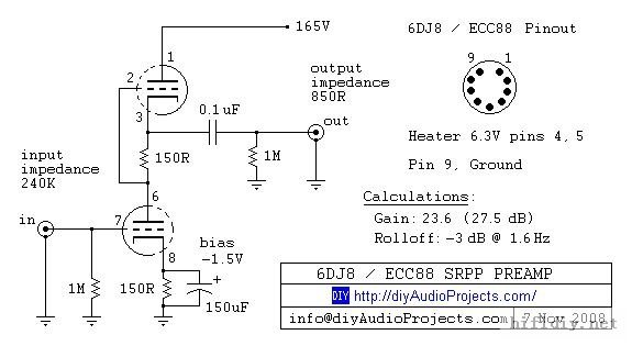 此后不再制作晶体管前级的念头就是这个时候产生的再次挖掘胆管6dj8(6n11 ecc88)SRPP胆前级的潜力