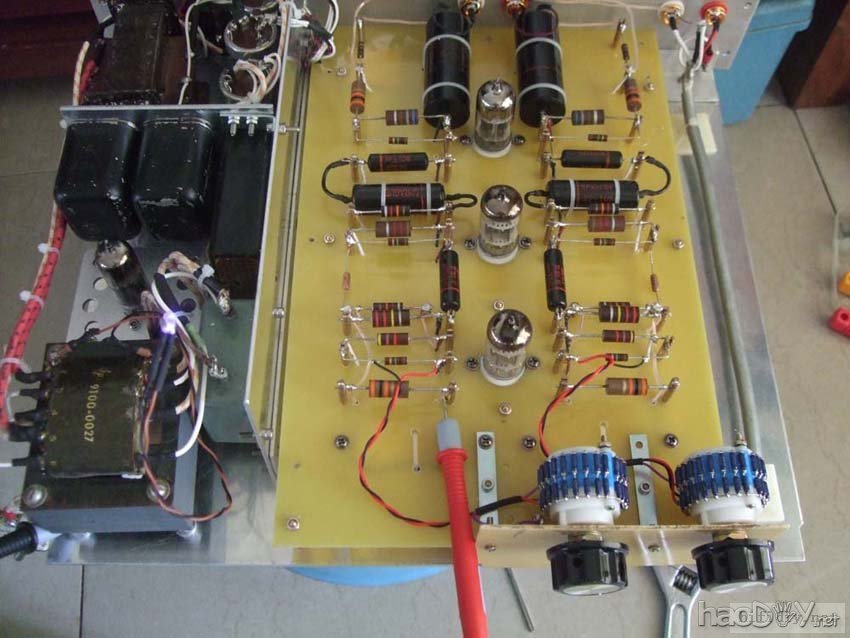 花开两朵,各表一枝.激活电容过程暂且按下不表. 且说我为了节省更多的米,尽量取用手上现有的元件,所以我所做的M7各大侠们做的有些出入, 首先,由于元件的大小差异,安装造成不便,不能用市面上的PCB,为了省米,就搭栅!!!! 电路是大家所熟知的 搭栅的第一步 按1:1比例,将元件摆放画在A4纸上,这样后面接线工作的开展 ![]() 第二,再将A4纸上的尺寸画在栅架上 ![]() 紧接着的工作就是钻孔,打磨,上焊柱 ![]() ![]() ![]() 前文再续,书接上一回,上回讲到接好焊柱之后,紧接落来就是焊阻容件了, 适逢今天周一,公司里大把事情要处理,8小时紧张工作之后终于不用O.T. 晚餐后继续仿做M7,好在都有现成元件,信手粘来,不一会功夫就焊好了 上些局部图看下 ![]() ![]() 阻容件焊接大致如此,功夫不到,还望指点 ![]() ![]() 阻容件好焊,但接线就考人了 接线花了我近3小时,但不理想,不知再如何改进,将就先通电再说 ![]() ![]() 接线如何改进才更美观呢?:dizzy: ![]() ![]() ![]() 搭栅部分先到此为止,下回就要安装电源部分了,若知如何搞电源部分且看下回分解 玩了几年音响,深知电源是机器的心脏,忽悠不得. 手上有N年前买的几个牛牛,参数虽不太理想,但也免强能用,2个电感,1个高压牛,1个灯丝牛,先看看 ![]() ![]() 这是用低电压激活过的电容,电容参数很好,容量足,漏电小 ![]() 取纳了KKK007兄的建议,将线再整一下,嘻,看起来还别有一番风味,可惜电阻已固定不好改了 ![]() ![]() 其实DIY还真挺累人的,白天在公司象头牛一样干活,为了不影响工作,只有晚上回家才有时间焊一下,焊好之后由于心情激动还得照几张相发上来和大家分享,所以三更半夜还不能睡觉,明天还得象一头牛一样. 好,言归正传!! 前文再续,书接上一回.上回说到搭栅焊好线之后就暂且按下不表. 且说电源部分,我还是喜欢胆整流,所以整机用了一支6X4整流 ![]() 电源部分取用了三级滤波方式,(如图).但不取用稳压,原因是我不喜欢用稳压,那是厂家用的大众化的手段 ![]() 今天的工作量就是把那些牛牛绑好,这些金工活真够累人的 ![]() ![]() 整机的整体布局就这样子了, 明天不知进展如何?且看下回分解 ![]() 休战了几天,今天终于把线都接好了,正在通电调试,电压有点高,达340V了 ![]() ![]() ![]() 接入电位器,正在试听, 信噪比有点低,声音也不是预期的那么好,可能没调好, 想请教一下有经验的烧友,整流后电压太高(340V),有必要降低到285V吗?谢谢 ![]() ![]() 测得各点对地电压,贴上图来,大家帮忙看看,工作点有问题吗?请讲讲,谢谢,小弟不是学这科的,所以不懂这些计算,就是喜欢玩. ![]() 机箱接地后信噪比很高了,现在接不接前级音箱的噪声都是一样的,谢谢. 谢谢指正,现在搞成294V了,一切正常,信噪比也提高了,失真也小了,正在试听,比昨天听的舒服点. ![]() ![]() 至此,DIY这台机器基本接近尾声了,先煲几天再调调,或者换个管听听. 但,作为一台音响(虽然是DIY的)摆在家中的大厅上,外观上也要过得去,要不LP大人也会不答应,所以一台漂亮的机箱必不可少,因此,搞了块紫铜板做面板.面板先用300#沙纸打磨后再用800#沙纸再磨,清洗干净喷光油 ![]() ![]() 选用黄花梨木做的机箱非常漂亮,木质感,木纹非常好,(可惜相机不好,照不出效果),此机古色古香,很衬我的300B,呵呵,一套实木机箱. ![]() ![]() ![]() 整体效果,还是比效满意,不管声音好不好,起码外观还是满意的 ![]() ![]() ![]() ![]() ![]() ![]() 呵呵,不要听别人说(听感),别人的感受和你的感受不一样,别人说怎么怎么样,可能你感觉不到,而且,别人说的都是好的,很少有人说自已做的机器不好听. ![]() 作为厂机,取用稳压电源和直流灯丝,最终的目的我想是提高信噪比而已,厂机其实是大众化的东东,其音色不是针对某个人来调校的,而是适合大部分听众的,这样才能卖得出去,所以厂机必须注重机器的指标,因此,为了提高信噪比而取用了直流灯丝和稳压 话又说回来,原装M7上也没高压稳压,还是用2粒石头整流 (责任编辑:admin) |
