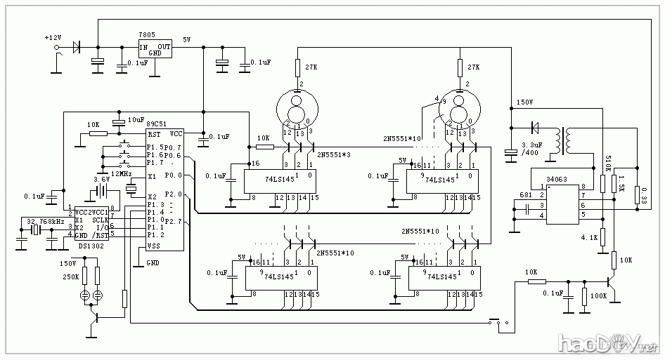 新年放假没事做,在家搞了个辉光数字钟,这个和HIFI没什么关系,但是确是实实在在的DIY,是全手工制作的^_^ 以前在学校的时候学过单片机,当时就很感兴趣,但也只是学学原理而已,没动手做过什么东西,出来工作后忘得也差不多了。前段时间看见坛里讨论辉光管