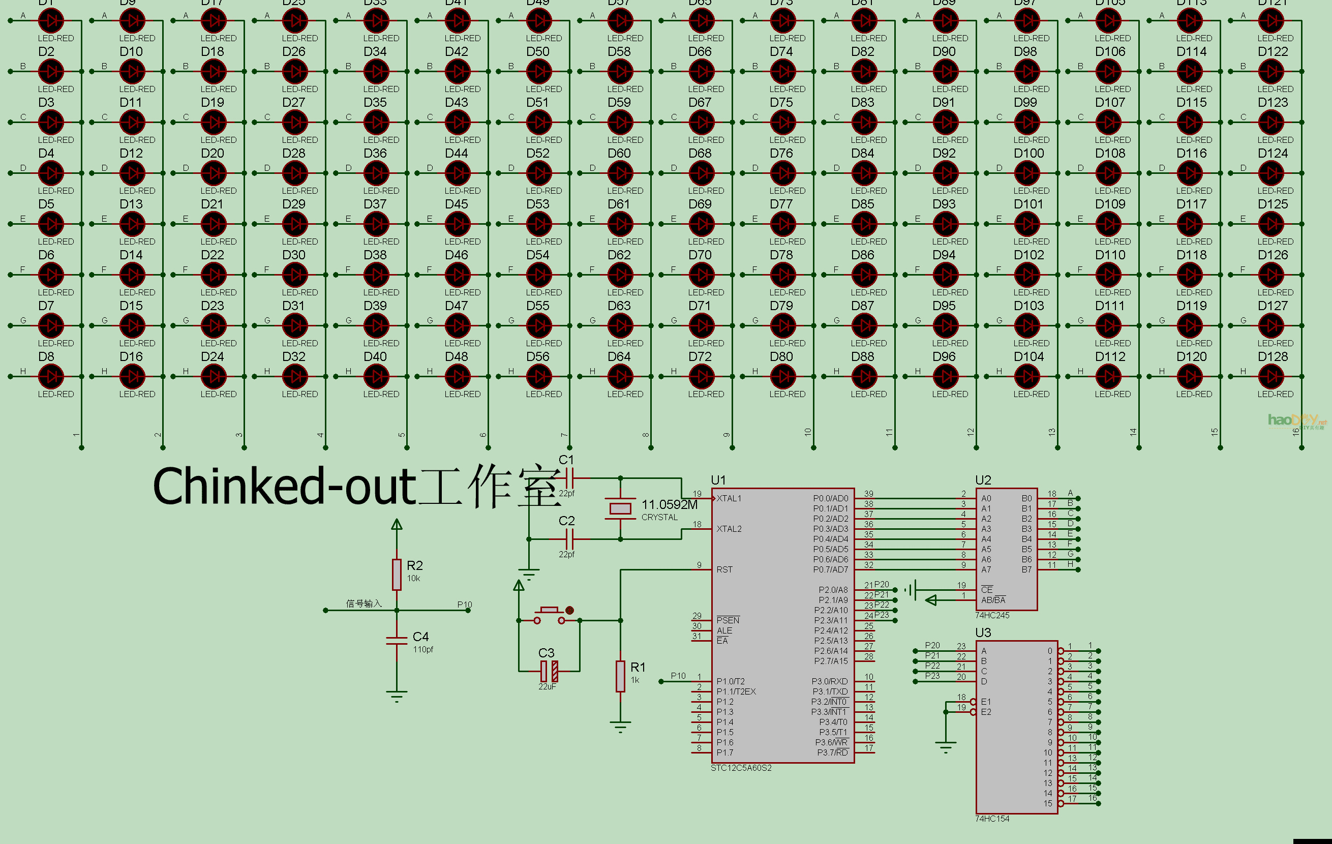 这次的小作品是频谱显示,8*16的led显示点阵配合stc12系列单片机系统,就可以自己制作廉价的频谱显示了! 关于原理图我想说的是,这是原理图,不是封装图,所以大多数IC是看不到Vcc或者Gnd的,但不代表没有,希望初学者留意。原理图是用proteus画的,信号输入端的电阻、电容是抗干扰用的,大小请根据电路的实际情况做改动 这次的程序不是本人编写,是我师弟的设计,程序是有缺陷的,比如音效的延时,显示的效果等,有耐心的朋友可以自己修改程序,这次的作品在于分享数模转换程序和FFT算法,我也希望网友可以将完善的程序分享到网上,大家共同进步!!!?
