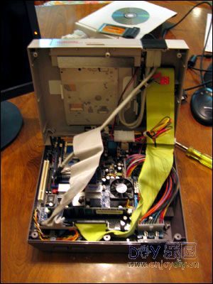 今天再给大家带来一篇SEGA的老对头——任天堂的改机作品:作者将一台任天堂NES(Nintendo Entertainment System,也就是风行全中国的小霸王所模仿的对象的美版)改装成了一台电脑。 一台完好的NES……现在这样一台日版或美版的FC主机在中古市场上可以卖到很高的价钱 再看背面,不看背面还真不知道这是台电脑呢 打开主机,下部由EPIA-MII 1000主板和一个80W的Mini电源构成 点击上图看大图 上部的空间留给外置插口、三星硬盘和一个松下的24X Combo 任天堂NES!组合! USB2.0、1394等扩展接口一应俱全,还能使用PCMCIA卡 工作中的NESPC NESPC的配置如下: 主板:VIA EPIA MII1000 CPU :1GHz VIA C3 内存:512MB PC2100 硬盘:Samsung 40GB 5400RPM 光驱:Panasonic 24x Combo 电源:Morex 80W 最近改机作品越来越多,人们改造的对象也从开始的DC、PS和PS2转向了一些老古董上,比如FC、MD甚至是PCE……难道最近流行将游戏机改成电脑用?(XBOX说:hahahaha,我本身就是电脑,不用改了阿……) (责任编辑:admin) |