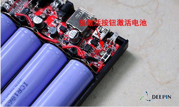 11、按一下PCB上的激活按钮,电池就开始工作了。