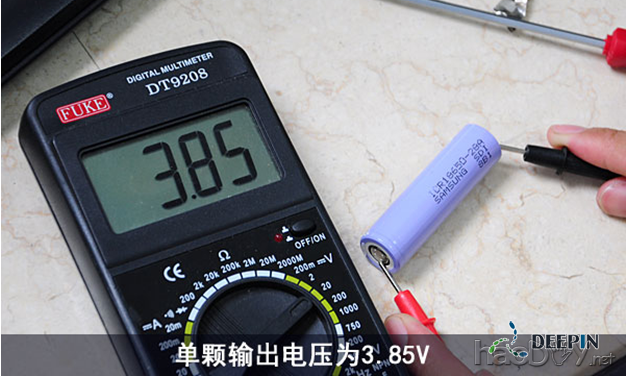 9、使用万能表检测一下电池的电压,电池电压是3.85v,属于正常范围。