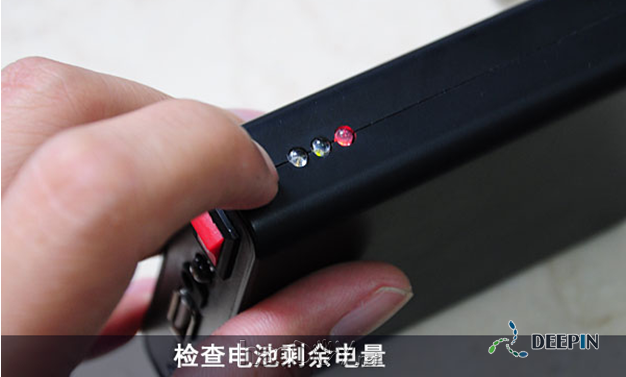 5、电池盒的旁边有电量检测LED和电量检测按钮,方便随时检查电量。