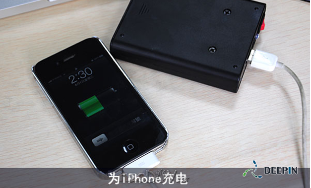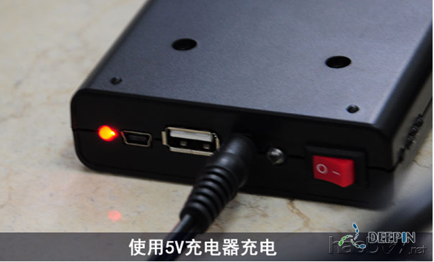 14、再来试一下充电,接上5V的电源,充电LED亮起,开始充电了。