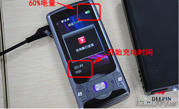 15、测试一下充电的速度,使用oppo手机进行测试,开始时手机还有60%的电量,接上移动电源的时间是5点49分。 #p#分页标题#e#