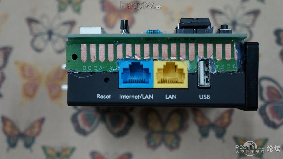 ![]() 经过这么漫长的改造,已经完成的,样子稍微有点难看,但对于工科男来说实用性还是更关键的。 ![]() 热熔胶还没做美化。 #p#分页标题#e# ![]() 网线接口,USB接口,我都是根据大小来切割板子的。 ![]() ![]() 哈哈 天线仍然是可以随意转动的。信号覆盖无死角。 ![]() ![]() 经过单片机的改造后,数码管可以显示时间以及路由器内部的温度。按钮也可以对其时间进行设置校准。 哈哈 还是直接上视频给大家看看吧,不足的地方还请大家多多指教!