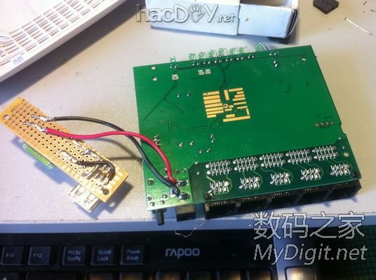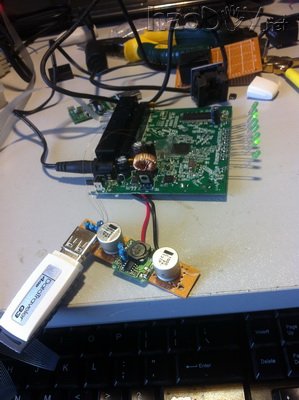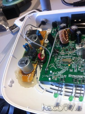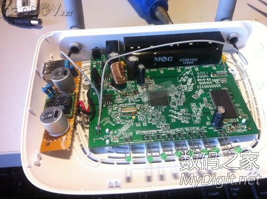 昨天在校内网上看到了一个同校区的妹子在卖路由 5块钱。。。 想想挺便宜的 就买了 结果今天手上没零钱 就给了10块 再加上妹子嘛 就给买了一袋糖 看妹子长得还不错 结果回来一拆 乐了 ![]() ________________________________________ 改装方案 换RAM为64M 换ROM为16M 刷华硕N14U固件 加USB接口 加USB供电模块 准备使用3R33 更换大功率电源 原机5.4W一定不够了 ———————————————————————————————— 上图 ![]() V6版本 ![]() 7620主控 可以直刷N14U ![]() 上工具 ![]() 突然想到能不能是坏的 一开机 没问题 这SSID 妹子的英文名吧 ![]() 全景 准备换RAM ROM 加USB 刷固件 ![]() ROM 2M的 ![]() 这个没查型号 估计16M ![]() 旁边还有个电容。。 碍事 先拆掉 ![]() 后来忘记装回去就开机了 能正常运行 估计是滤波吧 ![]() 拆下RAM ![]() 拆下ROM ![]() 土豪拿来了一点好东西 ![]() 丙酮 洗的很干净 不过有毒。。。 ![]() 忘记还要测RAM 又把ROM装回去了。。。。 换好64M 测试没问题 ![]() 尔必达颗粒 洗干净之后的效果 ![]() 刷入N14U固件 开机了 由于是16M的 比原来的固件开机慢很多 ![]() 华硕路由界面 改装成功 ![]() 反正有丙酮 就闲的。。。。 结果悲剧了 这玩意复试塑料 外壳坑坑洼洼的 以后愿意弄用细砂纸磨吧。。。 ![]() 准备装USB 先用烙铁画个线 ![]() 然后各种劳力 再用刀削了一个沉孔 ![]() 放上USB扣试试 ![]() 最开始的方案 直接USB口和路由垂直 后来发现下弯角度太大了 影响设备 ![]() 就改成水平的了 ![]() 然后找一块板子 ![]() 5毛一个 质量一般 ![]() 不过也好 很软 容易加工 ![]() 大概这样了 ![]() 剪子就能修剪了。。。 ![]() 上电阻 这里需要两个22欧串入信号线 没有22用20代替 两个15K下拉电阻 没有用20K代替 不装也行 不过好像速度上不去 ![]() 没有0.125W的 只有0.25W的 好大 ![]() 背面 无铅焊锡 所以并不亮 ![]() 焊好USB线 不像9331那样两个脚挨在一起 这个两个脚都是露出来的 可以直接焊接 不用磨芯片 ![]() 这张上面有松香 看不太清 ![]() 大概这样子吧 ![]() 和USB接口比对大小。。 ![]() 上热熔胶 断了就坑爹了 7620N在N14U上就没有散热器 所以就这样不加了 ![]() 小插曲 上次买剪线电源一起买的 其貌不扬 今天不小心弄破皮了 才发现这么牛X。。。 接近16AWP啊。。 ![]() 纪念 路由器的原装内存 有16的有32的 —————————————————————————————————————————————— #p#分页标题#e#华丽的分割线 3月20日 配件到了 继续 ![]() 3R33 3R35 3312 各五个 又买了30个电容 看卖家图片像是固态 其实是电解 ![]() ![]() 挑一个成色最不好的来拆 ![]() 放在板子上看看 不是很大 ![]() 拆开后盖 ![]() 露出板子 ![]() 拆掉多余的脚 只留两个输入 两个输出 再弄两个电容上去 看到防爆纹没。。。。 ![]()