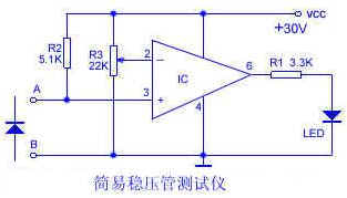 简易稳压管测试仪可直接测出稳压管的稳压值,制作十分方便。 电原理见下图。IC选F007、CA3140、μA741等放大器均可,R3选择22K的直滑式电位器,要求R3根据正电源电压精确标定电压值,并在外壳作上标记。 ![]() 另外,由于IC工作电压的限制,故限测稳压值在30V以下的稳压管。 (责任编辑:admin) |