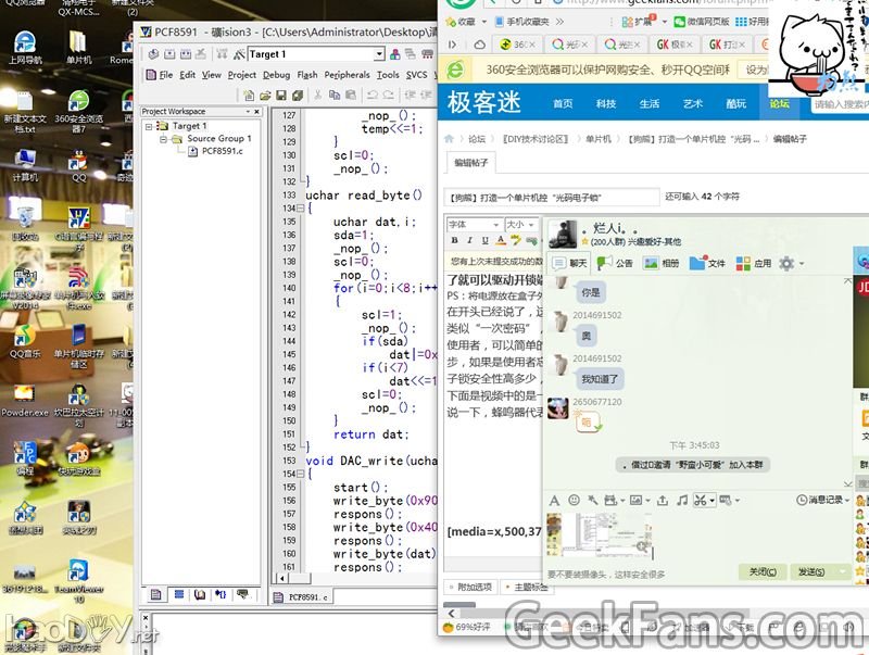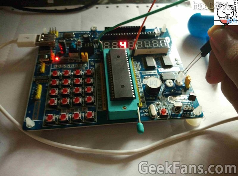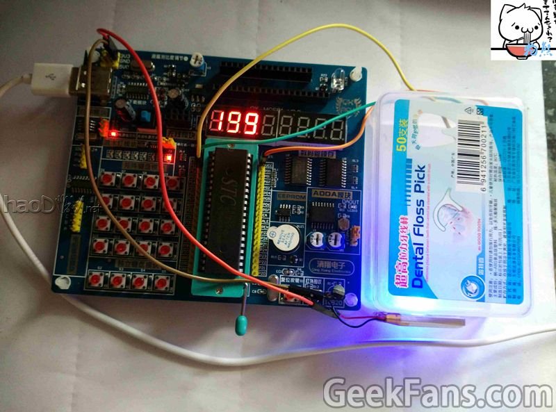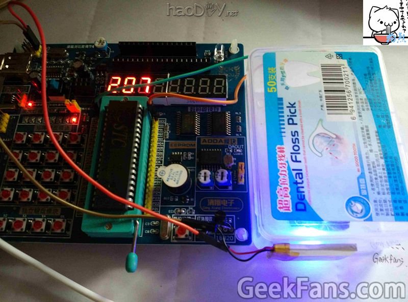 几天前看《我爱发霉》,看到一个光码电子锁,于是产生了一个改变现在普通的钥匙锁的想法。由于原版太耗孔方兄,我就做了一个简单的光敏电阻识别开锁。【安全系数小,但就算是破译出解锁端光发出的频率也无法开锁,因为光敏电阻感受的阻值不一样照样无法开锁,根据这点,对开锁端LED的亮度在每次开锁后改变,只有开锁端的LED同步】 可以随便改密码,改密方法:可以在代码里更改光发出的间隔闪烁次数以及间隔时间。这里我将这个设置成: 亮 →0.5秒→灭→1秒→亮→1.1秒→灭 ← 循环 为了提高安全,也可以做一个一次性密码,由时钟定时后随机改变后同步。 本次用到的是开发板,载STC89C52,(材料备齐自己做一个最小系统)