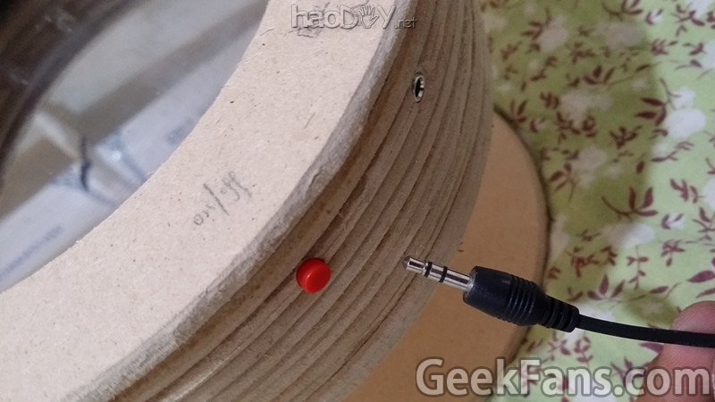 于是我做了这个 ,用圆形木板叠放的主体 加上内置锂电 红外感应模块 自动变色的led micro usb充电 的隧道