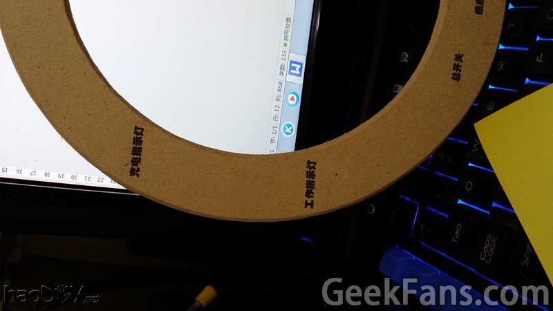 主体上的强磁上粘了一个橡胶垫 防止猛的吸住的时候撞碎磁铁 最后用热转印的方法 把字换一下 本人写的字实在是难看... 把字用激光打印机(必须是激光打印机)打印到热转印纸上 (镜像打印) 然后反贴到相应位置 用刀型烙铁 刮几下 把转印纸撕下来就ok