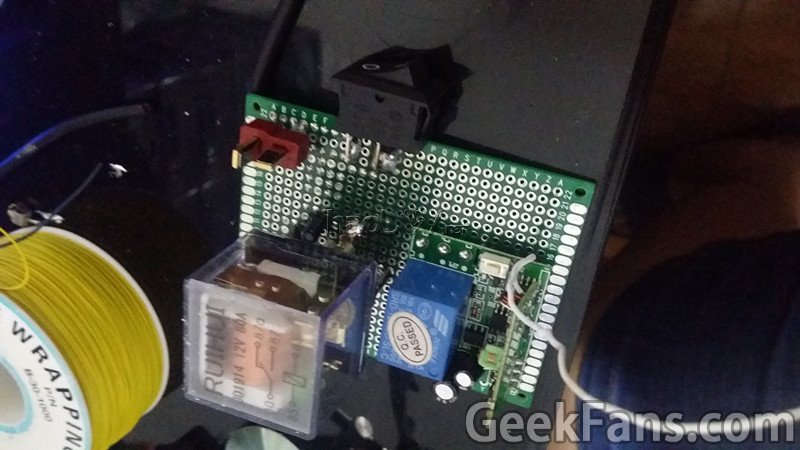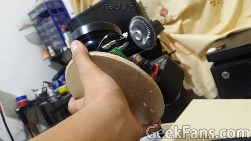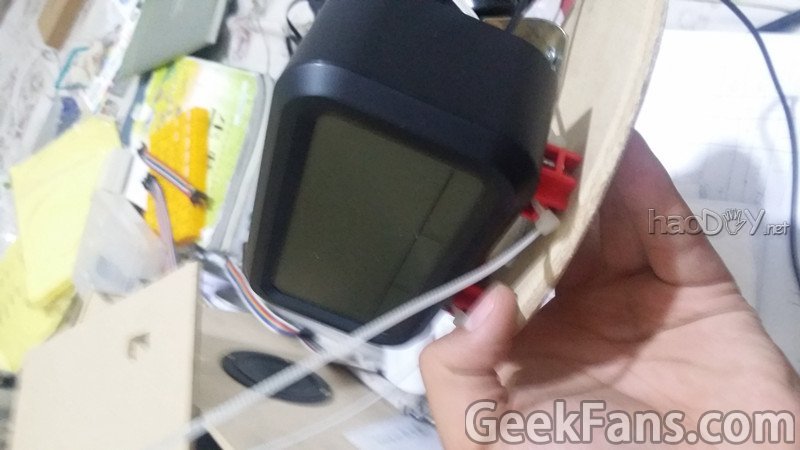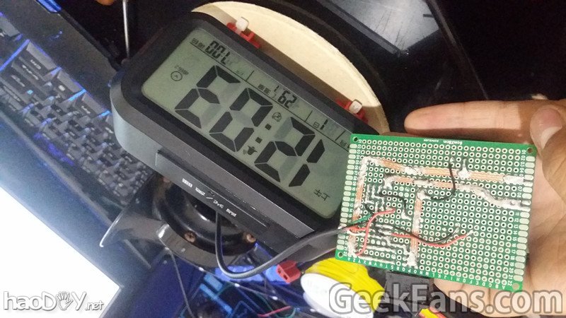 接下来把闹钟里的线引出去固定到木板上(我在木板上钻了四个孔直接用塑料绑扎带固定)