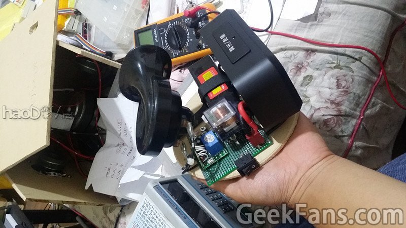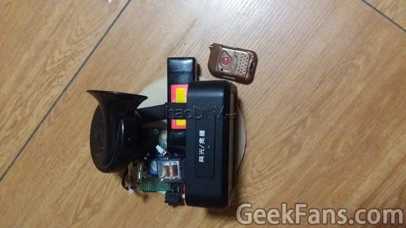 电子闹钟*1 大电流继电器*1 汽车喇叭*1(我用的是蜗牛喇叭) 11.1v锂电*1 一路无线模块*1