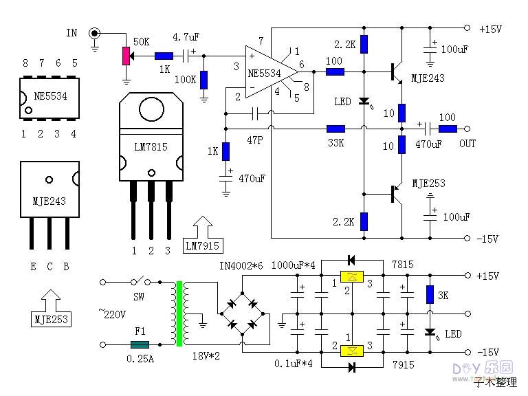 NE5534运放+MJ243(MJE253)功率放大器电路图![]() |