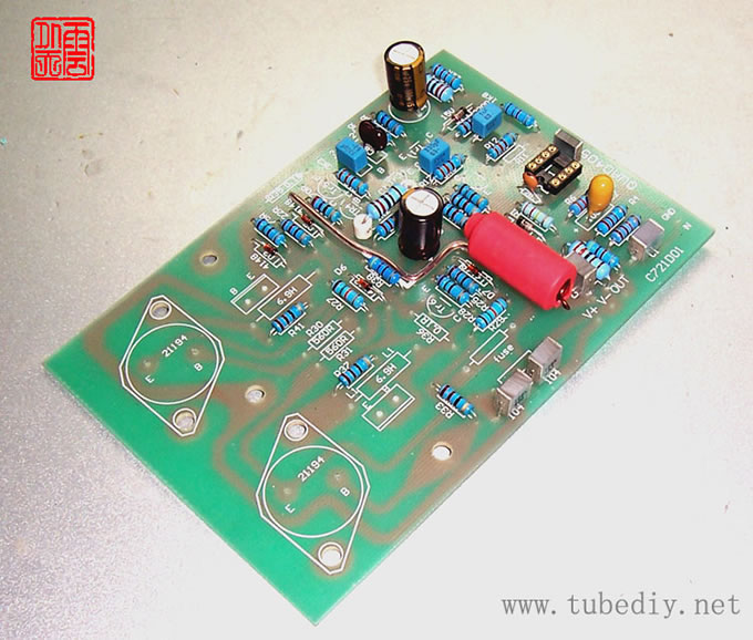 QUAD405功放电路名气很大,而且据说声音非常有特点,是比较典型的英国声,所以一直打算仿制一台,来实际体验一下。 网上销售的套件很多,自己选择的一套镀金的空板(购于“木棉花”),一套普通的套件(购于“lqf52266”),零件的选择一方面参考了许多朋友的经验之谈,另一方面也通过原装的QUAD功放的内部照片,来了解原装机中的零件品牌和型号。 个人认为业余仿制QUAD405困难的地方在于几个小容量的电感、电容和电阻,普通的万用表很难判断其好坏,需要有专业的电感电容测试仪表才行,但是这些元件在电路中起的作用非常重要,所以,这些没有经过测试的零件安装到电路板上以后,电路能正常工作多少还是要靠些运气的,如果都是进口的高品质元件,电路正常工作的几率自然是非常大的,如果是马马虎虎的国产元件,发生故障的可能性就大大提高了。 先焊上了安装LM301的八脚镀金插座,然后开始焊接电阻,电阻先用数字表测试一下,尽可能做到左右声道一致,然后再安装到电路板上。