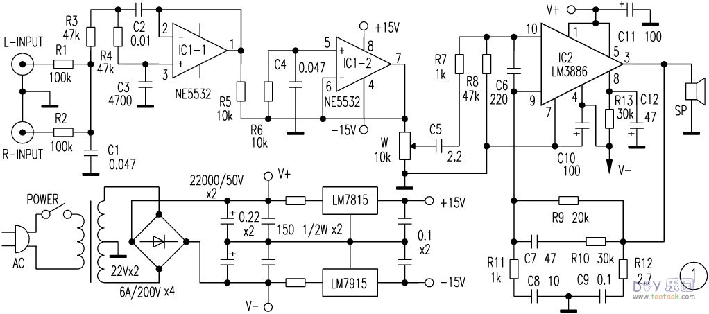 NE5532+LM3886T低音炮功放电路![]() ![]() ![]() |
