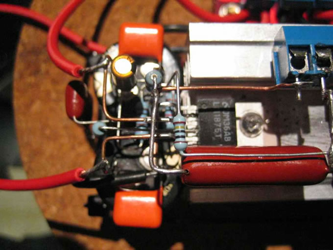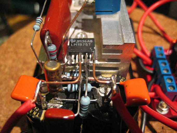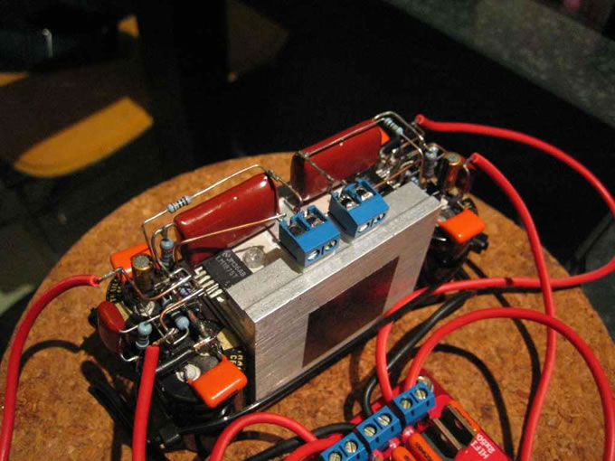 DIY基本功有限,只在學校時學過一丁點電子,就只曉得什麼叫電阻呀,電容呀等,線路及實作可以說是一無所知。潛水半年,學到了到很多,到今年初終於動手做套件,有幸最終都能成功,然後當然是不能自拔,決心做個自發的試試,買了幾個1875,夠便宜,最適宜作炮灰,結果又是低級錯誤,其中一路居然搭錯正負電源,一個1875報銷。先上圖,請多多指正。 訂下的制作要求是: 體積盡量少, 訊號通道盡量短, 一點接地, 基本上都能實踐,除了電源及輸入地,其他一律沒加額外導線。接地點花了最多時間構思,噪音水平可以說OK啦。 但仍有一個問題,開關機時的“噗噗”聲比較大 ![]() 如图所示为LM1875的双电源供电音频功率放大电路。输入信号VIN经过C1耦合到LM1875的1脚,功率放大后从4脚输出加到扬声器。R5、C5串联接在输出端用以抑制高频噪声。正电源 VCC、负电源-VEE分别接在5脚和3脚,并且采用100μF电解电容与0.1μF小电容并联作为电源去耦滤波,其中0.1μF小电容主要滤除高频噪声。 (责任编辑:admin) |