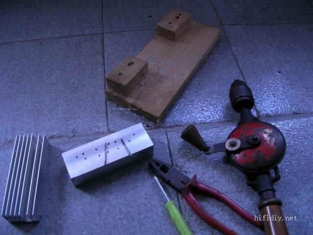 下面来说说散热器的打孔和攻丝,这里我用的散热器偏小,但之后的实际使用中150mA电流的温度是可以承受的