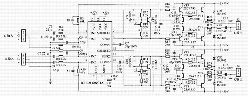 放假了,在家无聊,所以想把原来的功放线路淘汰了,刚好凑上LM4702,加上电路简单,调试也容易些,我可不想做台功放做过年了.