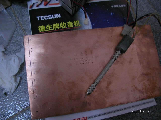 从原音购来LM4702,其他元件都是本地买.好不容易挑到大一点的双面敷铜板,氧化有些严重,没办法只得买,可能有人要问为什么不买现成的PCB,我是觉得本来就够简单的了,再买PCB就没有DIY的意义了.