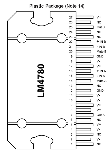 国家半导体的 LM4780 芯片是一款立体声音频放大器,可以为每一声道连续提供平均高达 60W 的输出功率。音频放大器在 20 Hz 至 20 kHz 的频率范围内,其总谐波失真及噪音 (THD+N) 都不会超过 0.5%。