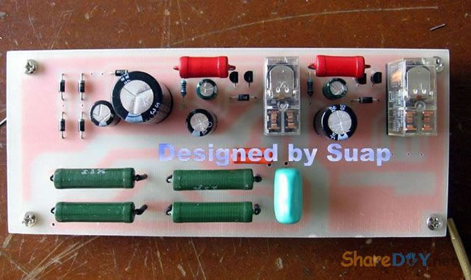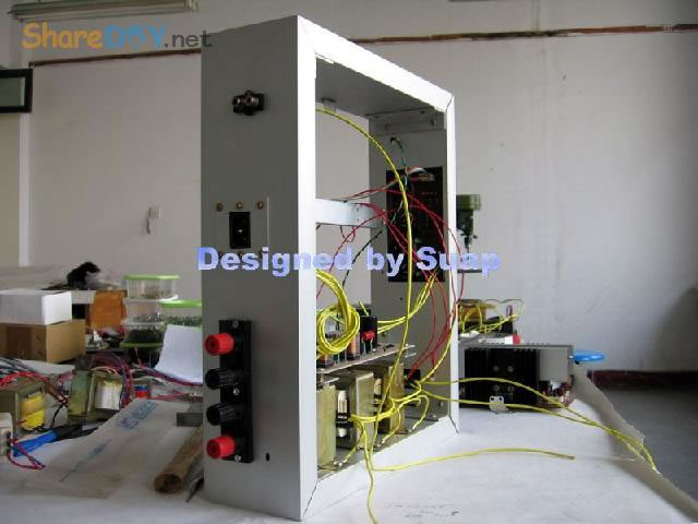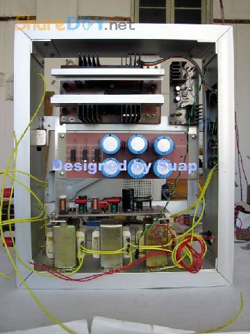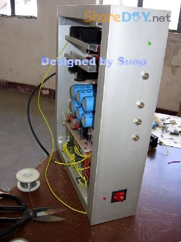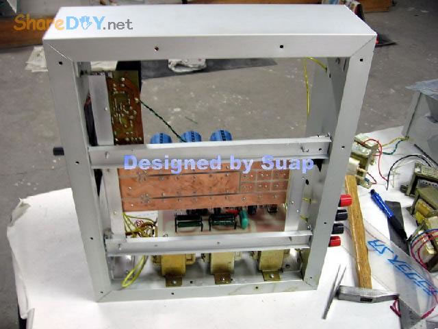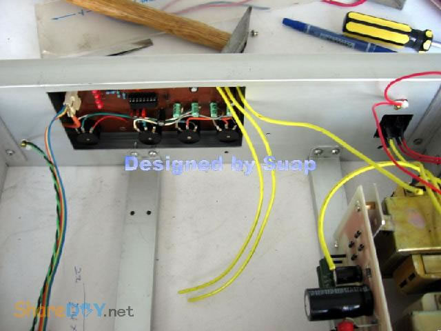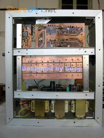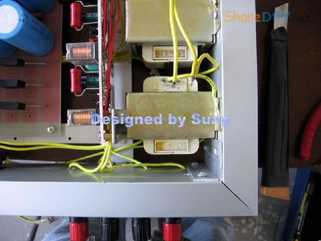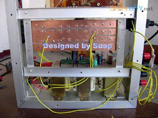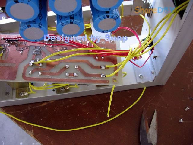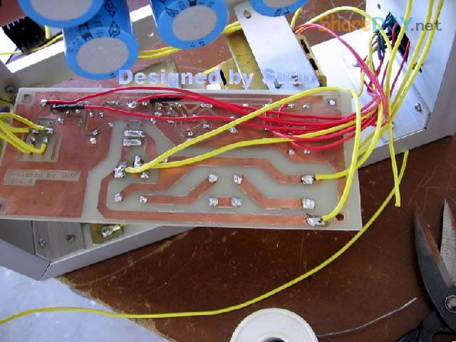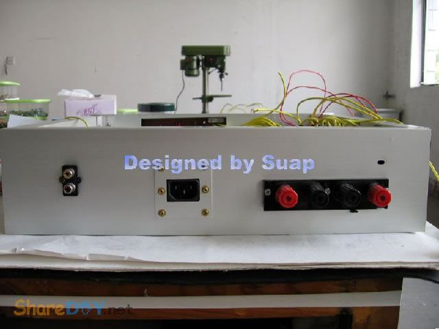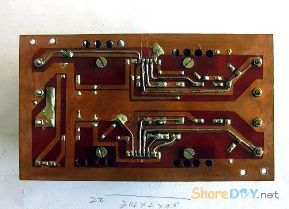 十年前,做好这个东东,现在拆了重新组装,是因为它的音质要比我新做的那个LM3886好听! 1、双声道TDA1514板。 ![]() 热器不够大,加装了铝合金。 2、反面 ![]() 到这里时感动了:这些年的制作"功夫"并没有提高多少!只是有了比那时更多的工具。线路板制作是用壁纸刀刻的。 详见 ![]() 3、TA7630直流音量控制 ![]() 4、反面 ![]() 5、有源伺服 ![]() 6、反面 ![]() 以上是拆下来的三块板子,那时做的时候是想什么模块化设计,现在重新组装倒是方便;用三个30W变压器作电源——当时叫气Nang功率什么的——而我是因为实在是没有钱,只用了两个,现在倒可以加一个的加变压器:)——机箱用铝合金(预先留了变压器的位置),还有六只大体积4700UF/35V普通电容;外加近几天新作的一块电源软启动板——用在LM3886上还不错——TDA1514这些年来的开关机声终于快要消失了...... 重低音没有哇。那个LM3886是可以作为重低音来用;不过我还是打算用LM3886作环绕。现在后悔把TDA2009送人了——那可是我的第一块刀刻板子——否则,可以用2009作环绕,而3886自然可以作为重低音。 这样如何? 主声道:双TDA1514;环绕TDA1521;中置TDA1521BTL接法;重低音LM3886;那样我只要再搞个中置就好了。[ 7、新做一控制板 ![]() 8、反面(热转印+刀刻,小刻痕刷清漆时会被掩盖,刷清漆防腐效果不错哦) ![]() 10、反面(刀刻) ![]() 11、拆了的箱 ![]() 12、三个35W变压器,40元。(16V+16V1个、16.5V+16.5V两个) ![]() 13、布局。铝合金用最细的水砂打磨光亮。 ![]() 14、面板改造进行中……四周密打孔,用斜口钳剪切断,切断三边,第四边直接折断 ![]() 15、面板改造进行中……起……(中间发错一张,今天不能发了,这个框什么用,改天请看下一张) ![]() 16、面板改造。装入音调板。输入信号从铝合金中空穿至后面板。 ![]() 17、面板改造。前视。旋钮还没有完全搞定。用LED把多余的孔堵了。 ![]() 18、后面板改造。帖上去的一块是面板上挖下来的。电源插孔。 ![]() 19、电源。控制板架到变压器上。恰好有两个变器顶部多出两个“东东”——纯粹意外——就这样固定好一块板子。 ![]() 20、电源。侧视。 ![]() 21、滤波板反面。工字形。两头架起。固定螺钉为电脑用的六角小铜螺柱。小块为6V双电源,供TA7630 ![]() 22、滤波板就位。固定用自攻螺丝。薄铝质材上用自攻螺丝,预打孔径要小些。0.5个肯定不够。下图中的横杆用小铝合金切成三份取两边,做成箱体肋条。 ![]() 总体上先排位,描打孔点,然后拆下打孔,为了看上去是方方正正。这次的电源滤波板架空了,焊接应该可以“双面”操作。差功放板装上就要开焊——事实上是没有定下功放板怎么装法,暂且停下,过几天,想好了再来。 板子已固定。 ![]() 24、底视 ![]() 控制板上好多线! 25、控制板连线说明。左边4条黄线:延时控制,继电器串接于功放输出。左上两组2条红线:LED指示,套黑的为正,并接于两个继电器线圈上。中间2条黄线:主电源控制开关。右下2黄线;主电源连线。右上2红线:控制电源开关。右侧中间(已被挡住)2红线:控制电源输入,交流16V。整流后实测21V,降压电阻(220欧)10V,继电器工作电压11V。 ![]() 26、主电源与控制电源。控制电源取自主电源变压器双16V中的一组作全波整流,引起主电源地与控制电源地电位不同,两者不能直接相连,目的是为了省去一个变压器。控制板地线悬空。主电源地与机箱壳相连。图中右侧边缘为临时保险管。 ![]() 27、调试时只接一组变压器(上图)。LED指示依次点亮,实测空载输出电压:23V+23V。下图LED指示正常。用测电笔检测感应电,不亮。 ![]() 28、通电前检查。用万用表测电阻,发现不论开关处何种状态,电阻都不能是无穷大。后来查出是一条线焊错。下面的图中是错连,25图中正确。 ![]() TA7630到TDA1514用的是排线,确实不是屏蔽线!一头是三孔的,另一头是六个孔的,用六根排线边接方便一些。 继续…… 29、变压的问题这样解决。这个不行,拆下。 ![]() 30、是线断了,约3~4mm长。 ![]() ![]() 32、完成修复。 (责任编辑:admin) |
