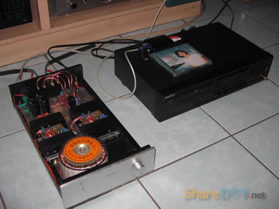 经过精心制作本功放耳贴在喇叭上基本上听不见噪音,本功放板比一张名片还小,1875采取卧式安装,所有连线都从铝板下面走,这样有利于提高信噪比,声音很柔顺耐听,有兴趣的朋友不妨试试