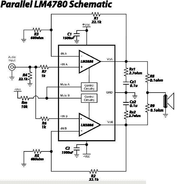美国国家半导体的LM4780芯片是一款立体声音频放大器,可以为每一声道连续提供平均 高达60W的输出功率 LM4780有 蜈蚣脚 IC之称!号称2*LM3886,我曾经记得有款进口的乐林功放采用数片3886并联输出,作为并联方面,4780应该比3886具有优势 有两块LM4780时,可以考虑