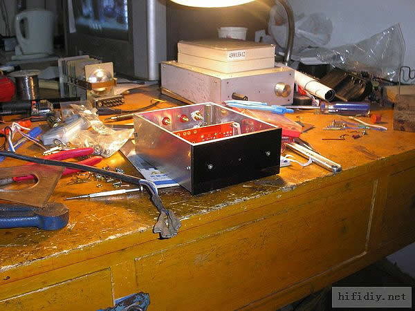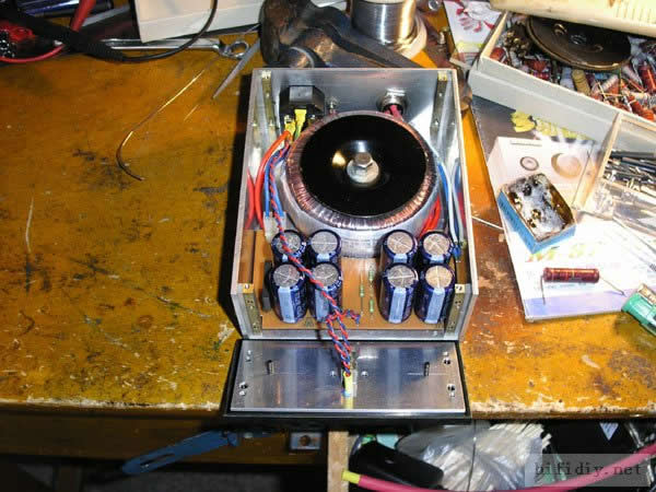 一直想做国外的那个LM4780分体功放,于是下定决心做。忙活一个星期把电源箱做好了,每块铝板,每个螺丝孔都是全部手工打造,本来想把所有螺丝全部做沉孔的,用平头螺丝,后来发现铝板较软,在铝板上做沉孔的确难度大,容易打偏,所以只好放弃。下一步就是做功放部分了,先上图