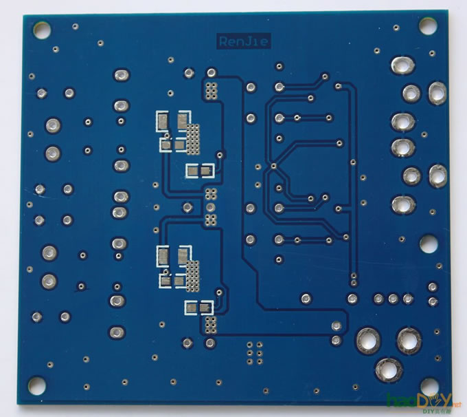 距离笔者上一款功放的完成已有大半年的时间了,在这期间,采用TA2024的那款功放性能一直十分稳定,唯一的不足就是输出功率偏小,特别在搬到室外使用时,要推动一对60W的无源音箱就显得力不从心。而且笔者一直没能给它找到合适的外壳,裸板工作着,让人很没有安全感。于是,我开始琢磨制作一款功率更大的D类功放,并且为它配了一个漂亮的外壳。 想来想去,没能找到什么合适的方案,笔者之前所知的D类功放大多为平板电视机设计,功率在一二十瓦,制作我需要的功放,输出功率不会有大的提升,当然也有类似TAS5630这种号称输出功率能达到600W的,但无论是元器件还是电源的价格,都远远超过了笔者的支付能力。正在犹豫不决之时,偶然看到了《无线电》2010年第3期的套件制作文章——MINI USB AMP,套件中将双通道D类功放TPA3121用于桥推形式,大大提高了输出功率。没等细读完文章,笔者就迫不及待地开始设计电路了,笔者手头正好有几片 TPA3123和TPA3124,朋友送的TI样片。 电路简介 TPA3123/4是TI公司推出的双通道D类音频功率放大器,其中,TPA3123电源范围比TPA3124略宽,每声道输出功率比TPA3124大,而外围电路完全一样。用于双通道放大时,TPA3123每声道最大输出25W(TPA3124为15W),需要加大容量的隔直电容。而用作BTL形式输出时,理论上输出功率能达到双通道输出的4倍。如果忽略MOS管压降,当电源电压19V(笔记本电脑电源)时,可以估算得在6Ω负载上获得的功率能够达到 30W,24V的电源电压下将近50W,显然,这个输出功率是让人满意的。 图1给出的是TPA3123用作桥推输出的原理图,外围电路十分简洁。图中将17、18引脚上拉到高电平,每通道电压增益为36dB,约63V/V,则 BTL形式输出时电压增益约为126V/V。需要注意的是,TPA3123的输入阻抗随增益设定的改变有很大变化,所以耦合电容容量需要根据实际情况进行选取。按图中设定的增益,输入阻抗约9kΩ,选取1μF的耦合电容,可得下限频率约18Hz。 图中的J1为开关,通过控制TPA3123的SHDN引脚实现开关机操作。再看看输出级LC滤波电路,单从电容、电感的参数就能看出,TI公司的D类功放低通滤波上限频率比TA202X系列的要低,这可能是造就TI公司D类功放高效率的重要原因。从数据手册上可以查知,TPA3123在输出功率较大时,效率高于90% 说了这么多,差点忘了电路的一个重要组成部分,那就是输入端的单端转差分电路。由于BTL形式的放大器的两个输入端输入的是互为反相的信号,而一般的音频信号为单端共地信号,因此需要一个电路实现单端转差分功能。最简单的实现方法是使用一个双运放,其中一个作为同相比例运放,一个作为反相比例运放,并使其放大倍数分别为1和-1即可。但是这种方法使用的电阻阻值不一致,很难保证输出信号的良好对称。笔者借用了《无线电》2010年第3期那篇文章中介绍的方法,一个运放用作跟随,另一个用作反相放大,电路如图2所示。由于使用的电阻阻值一致,比较容易做到输出信号的良好对称性。 最后需要提一下电源电路。笔者个人认为,给工作在小信号处理状态的运放加上线性稳压电路是很有必要的,所以这里选用高性能的低压、单电源运放 OPA2353,并使用7805稳压为其供电。电源电路如图3所示,由于TPA3123的工作电压高(可以高达30V),串接一个电阻降压很有必要。 元器件选择 每一次的制作中,元器件的选择这一项是至关重要的,因为合适的元器件不仅是电路安全稳定工作的前提,在音频电路中,更会直接影响听感。 在以往的制作中,出于价格的考虑,笔者往往本着实用的原则选用器件,而这回摒弃了这一原则,也小小地“发烧了”一把。 首先是级间耦合电容,首次使用了好评如潮的红色WIMA,而输入耦合电容、+5V电源退耦电容全部使用贴片钽电解电容。值得一提的是,单端转差分电路中用到运放,来自TI的高性能低电压满幅运放OPA2353,2.7~5.5V的单电源电压,低至0.0006%的THD+N以及高达22V/μs的压摆率,在单电源运放中绝对是首屈一指的。最后说句实话,尽管在这些器件上“发烧”了一把,但究竟性能有多大提升,或者说带来的提升是否感觉得到,笔者是不得而知的。 接下来是滤波电感,成品的电感在这种大电流情况下不太可能符合要求了,所以只好自己绕制。笔者选用了铁硅铝材料的磁环,商家介绍这种磁环频率高、不易饱和。买回去不同尺寸的磁环,最后通过边绕边测的方式,确定了如下的制作方法:铁硅铝磁环外径13mm、内径7mm,铜线直径0.8mm,匝数为18匝,实测电感为21μH左右。 最后需要注意的是滤波和退耦电容的选取。因为电源电压较高,一定要注意电容的耐压。笔者打算使用笔记本电脑电源(19V),主滤波电容选用 470μF/25V的铝电解电容。当然,如果PCB空间允许,容量可以选得更大一些。另外要注意AVVC端的退耦电容C9,如果使用贴片的钽电解电容,耐压很难做到很高,因此,在这里用1210封装的10μF瓷片电容代替。电路中其他元器件的选用可以参看实物图。 PCB的设计 这一环节无疑是音频类电路制作中最具技术含量的。低速数字系统的PCB设计大概只要连通了就能正常工作,而音频功率放大器的PCB上,也许仅仅由于一条走线的变化就可能引入噪声。笔者看过许多经验丰富的发烧友谈论PCB的设计问题,觉得涉及的很多方面的知识是没法用理论很清晰地表达出来的,唯有多次的实践,才能逐步掌握其中的技巧。图4给出的是笔者设计的PCB图,每一条连线都是通过反复考