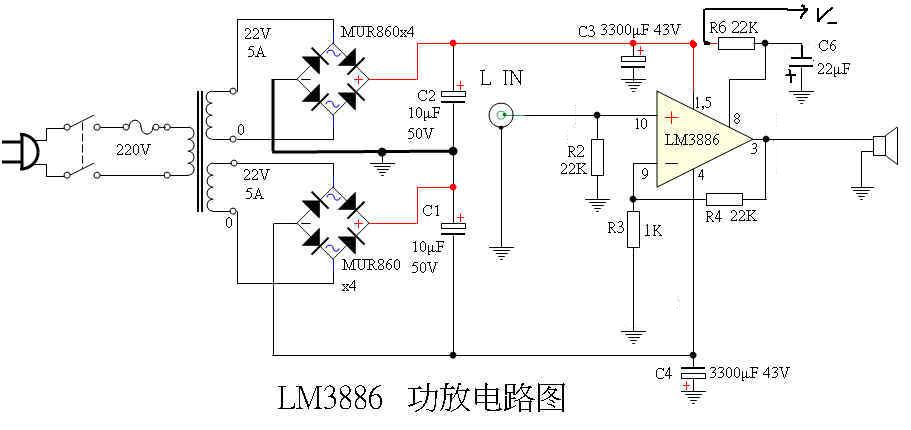 最近经常看见有朋友介绍GC功放的制作,再加上原有的一台天逸功放因为底噪太大被人打击没有透明度,于是想到了做一个GC功放。线路图参考了坛子里的LM3886的图,但是稍微修改了一下。