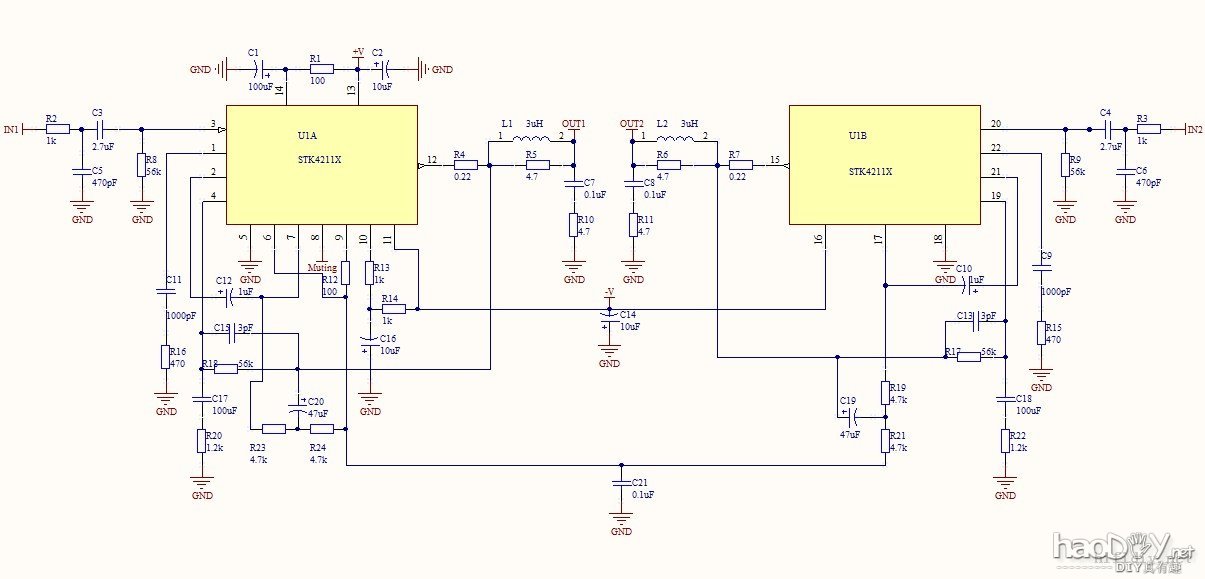 用三个常见原件自制简单功放板。...