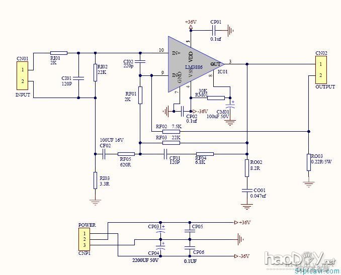 这套合并级的后级线路是国半LM3886厂家标准线路,烧了十几年了,到现在我个人是不推荐更改原厂线路的,能用自己的制作水平发挥出原厂线路的各项性能指标就不错了,个人浅见。至于前级的胆缓随时可以换成晶体管或集成块做的前级模块,做出适合自己听感的音色出来,以便玩出更多彩来,胆缓的+-25V供电滤波电路也可以方便的改成串连式+-24V稳压电源。