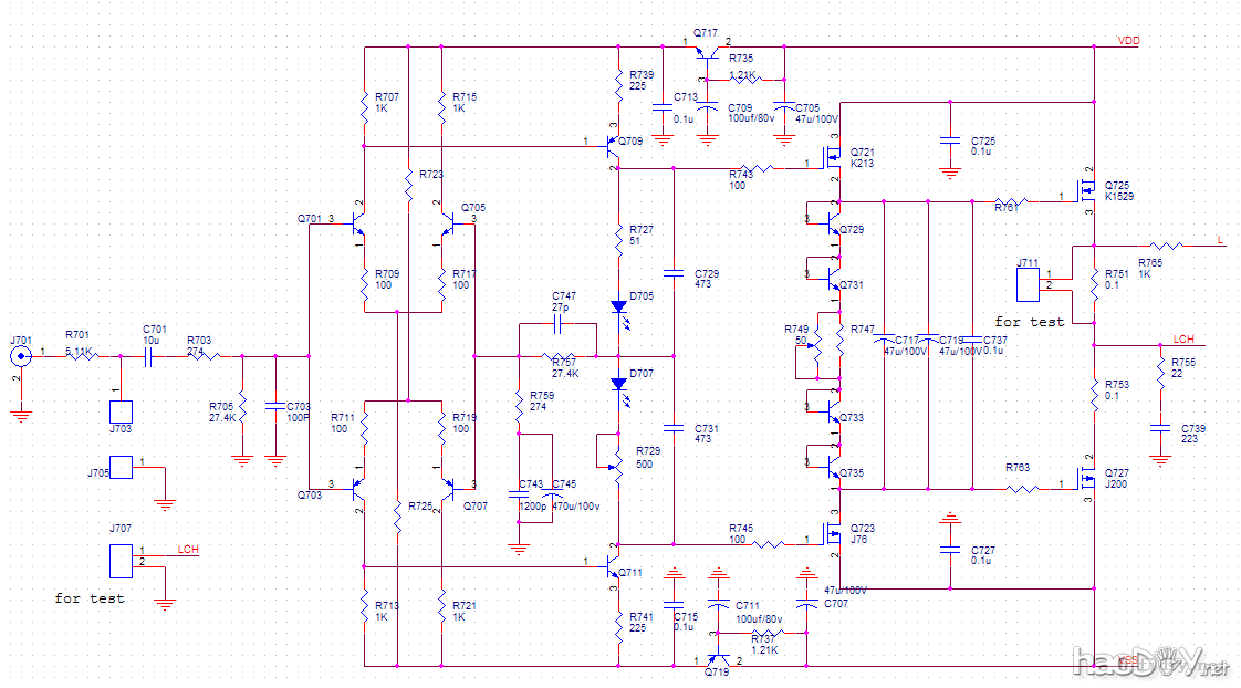 之前看到网上的一些版本,只有WD杂志的那个比较接近,线路结构就没什么可说的,简洁、直通,一点愚见:驱动级的低阻高偏流设计,能够迅速的为mos充