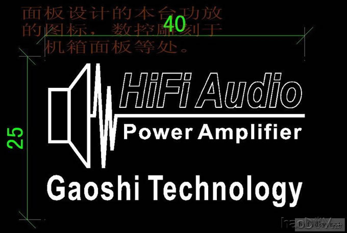面板在浩然机箱定制,费时又费钱,真不知说什么好。我总体上是满意的,尤其是上面雕刻了我为本次做机专门设计的图标,其中的“Gaoshi Technology”是我在一向从事设计的每块线路板上或者开发制作的其他东西上使用的个人标识。盖板和底板是我在街上加工的每块尺寸351*350mm的2.5mm厚的镀锌板,上盖板数控冲孔很多,底板只有在两功放扳安装位置下方冲孔,用以加强散热效果,冲孔花去40元。面板上弄了4个指示灯;下排右边的是蓝色的待机LED,左边是双色LED,电源在软启动时显示红色,启动延时结束时转成,上排的2只纯绿色的LED为左右声道的输出指示,如果输出保护则灯熄灭。(直流放大器,输入没有耦合电容,如果输入有大于300mV直流分量或者输出有400mV左右实测直流分量则启动保护电路切断输出)
